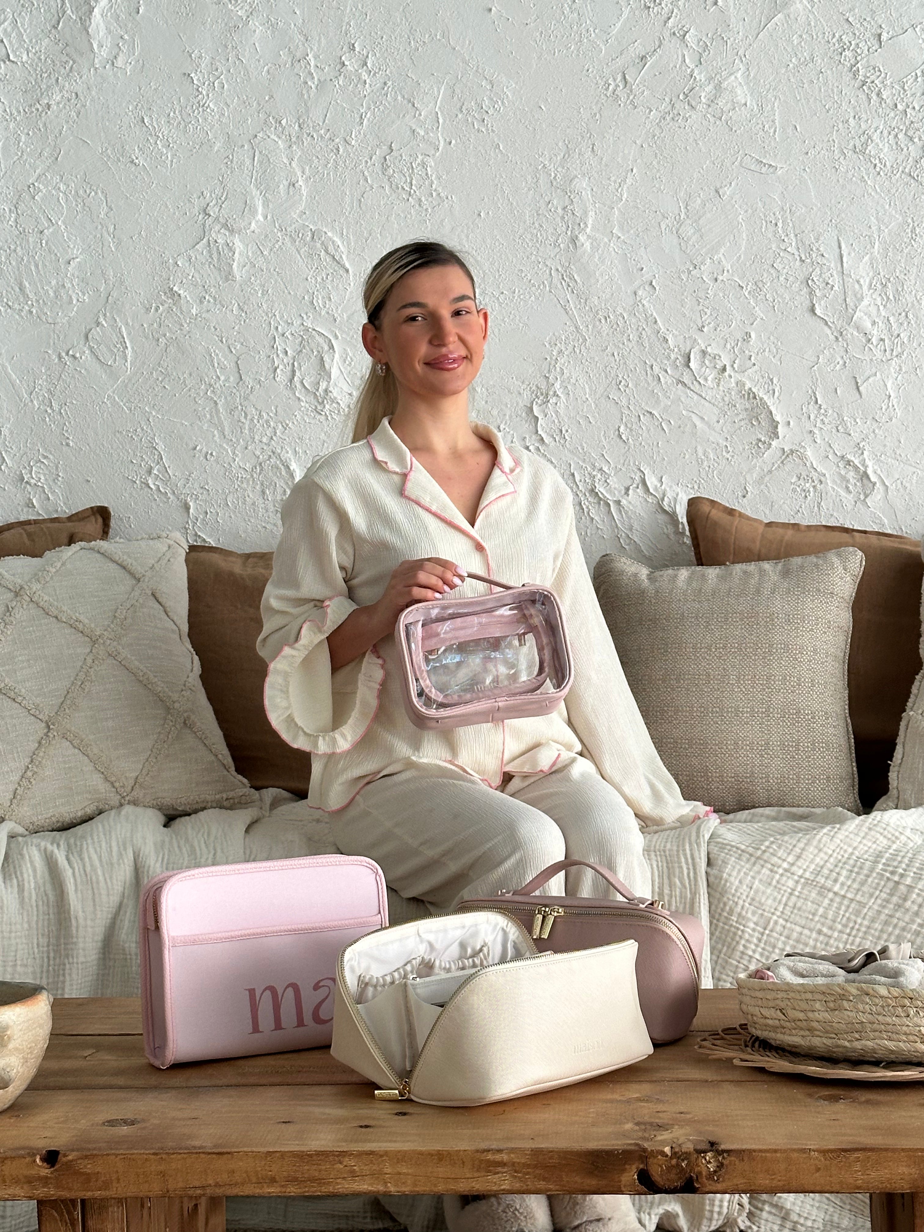 We design with both beauty and function in mind. Our products blend a feminine aesthetic with thoughtful features that make organizing effortless. Every piece is made with high-quality materials and crafted to stand up to daily use—whether you're at home or on the move. From the zipper to the stitching, we care about the details so you can focus on what matters: feeling elevated in your beauty routine.
