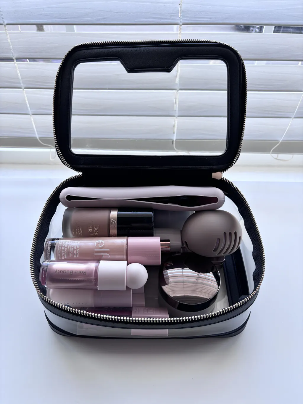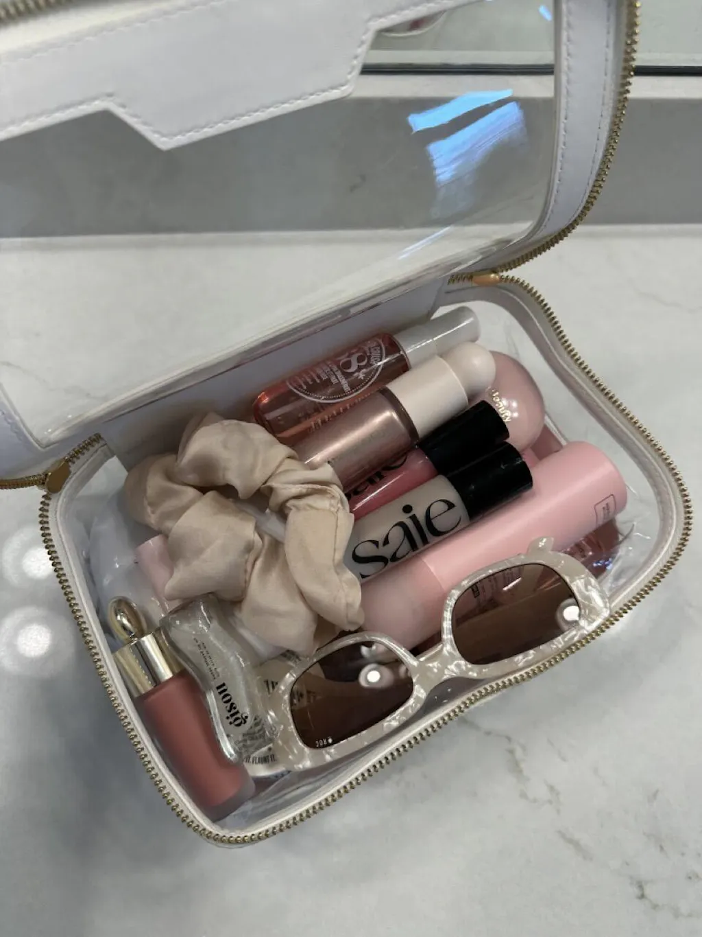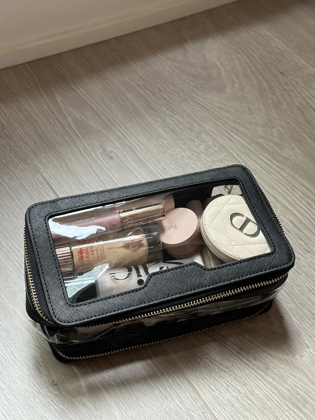 The Tiktok viral clear travel makeup case, AILYN features high quality materials, a structured exterior, dual zippers, and is perfect for you to take on the go! With one large transparent compartment, you'll love being able to see all your beauty products. It's TSA friendly, making it super easy to pass through airport security. AILYN is the perfect makeup case and toiletry bag for all your beauty and skincare products.