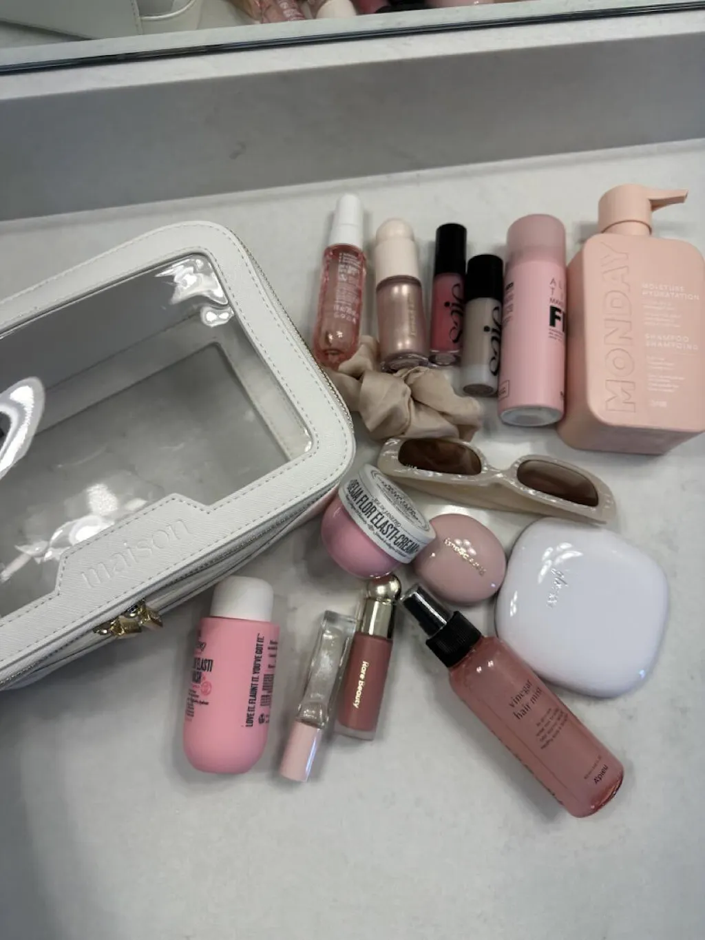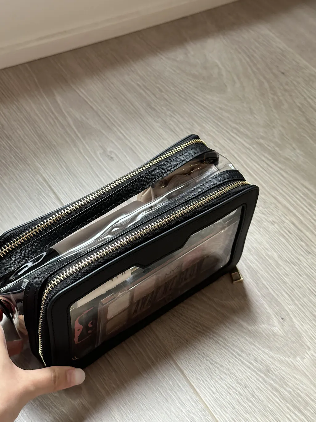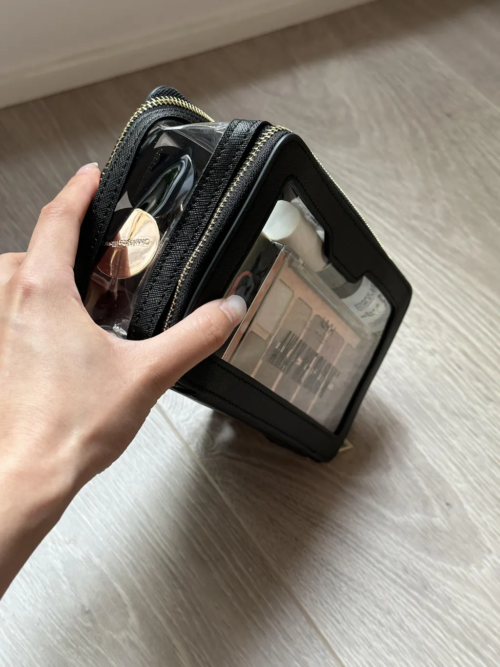 The Tiktok viral clear travel makeup case, AILYN features high quality materials, a structured exterior, dual zippers, and is perfect for you to take on the go! With one large transparent compartment, you'll love being able to see all your beauty products. It's TSA friendly, making it super easy to pass through airport security. AILYN is the perfect makeup case and toiletry bag for all your beauty and skincare products.