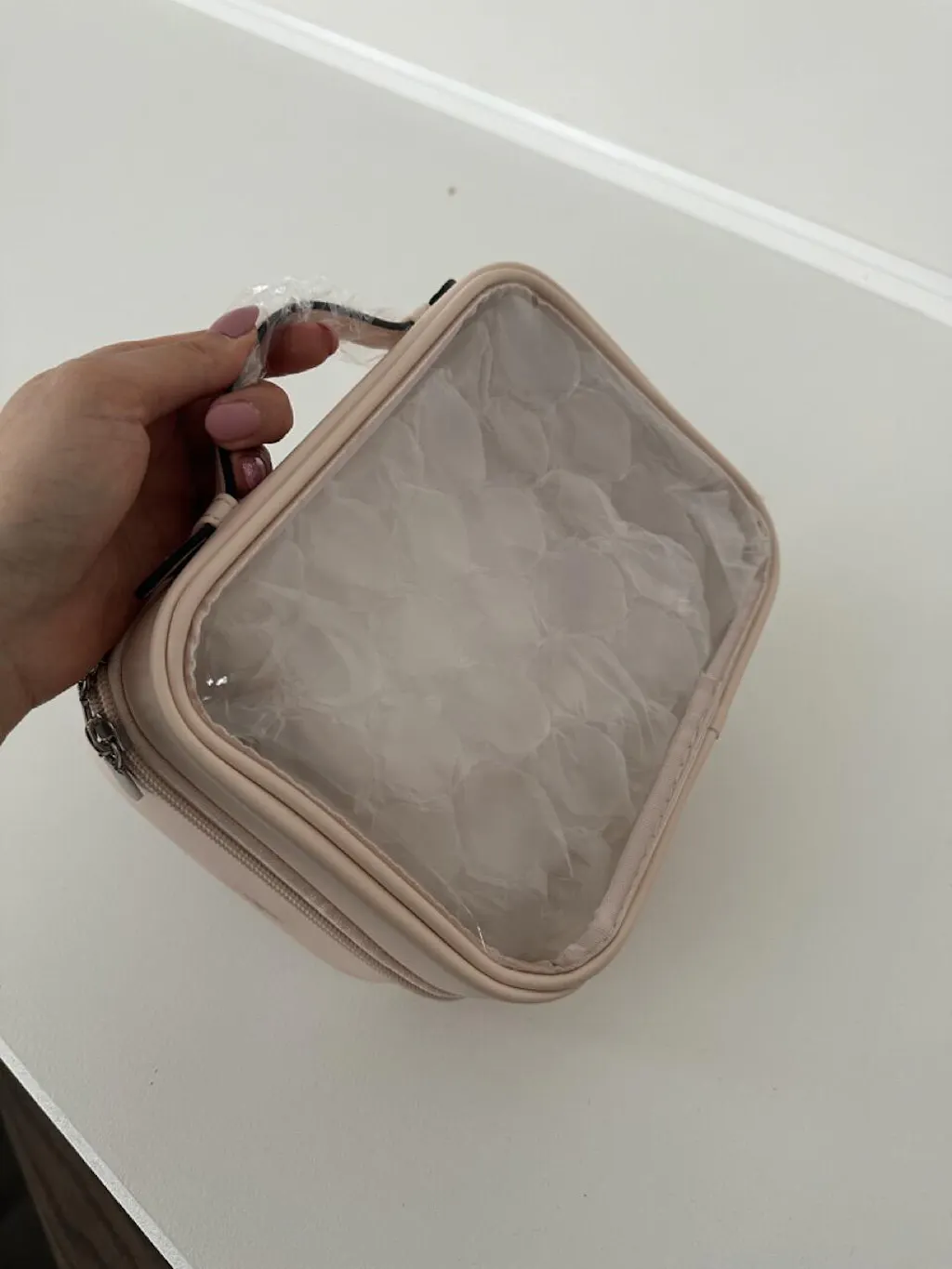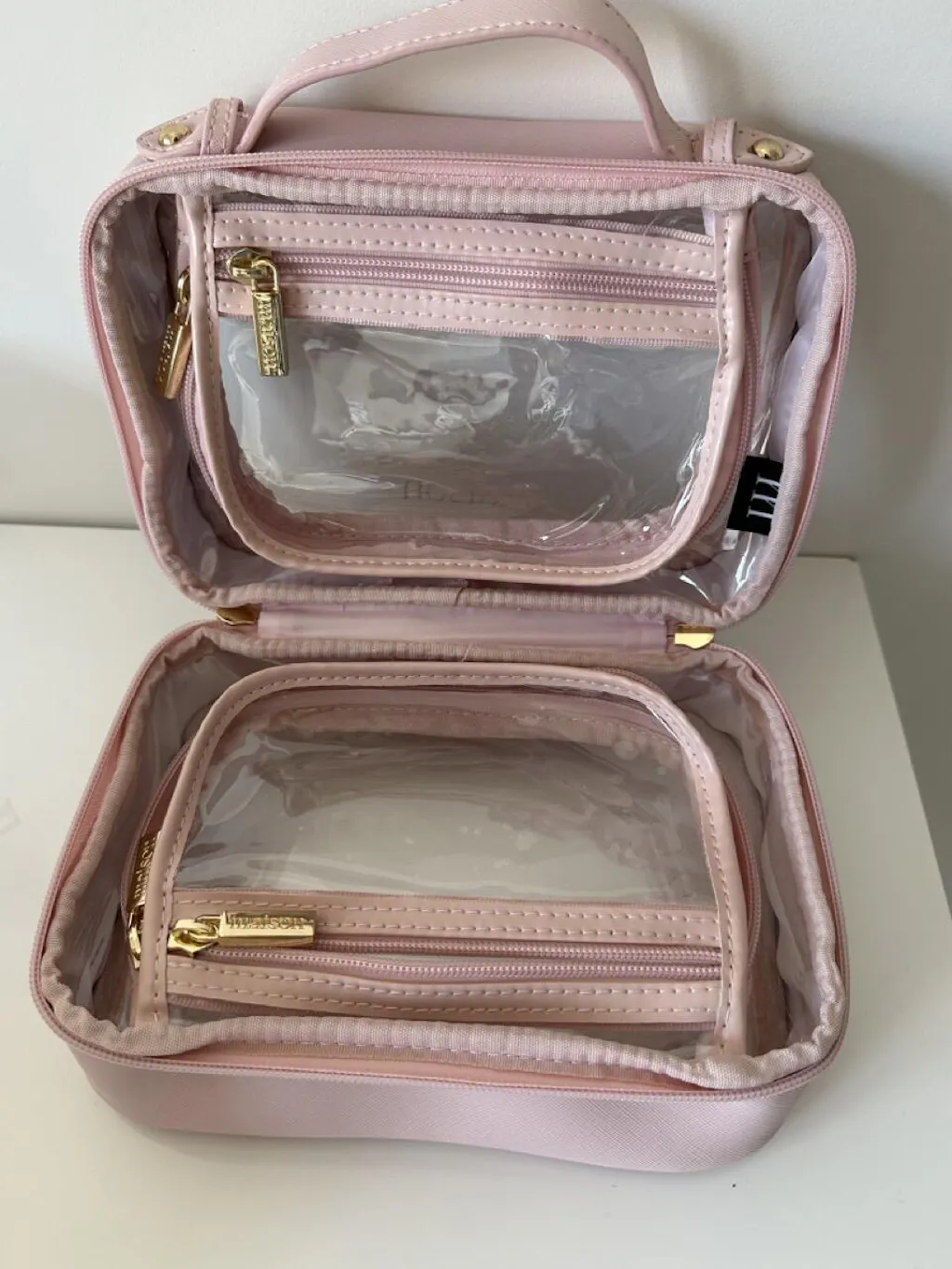 ● Transparent cosmetic case with dual compartments and dual zipper opening